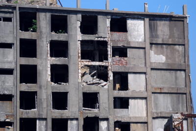日本初の鉄筋コンクリート製高層住宅だったそうだ。それだけに壊す費用もかかるため、このように放置。