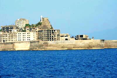 1時間の見学を終え、軍艦島を後に。帰りは島の周りを一周。最も軍艦に見える角度。
