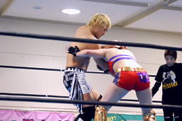 華名キック、美央かわして逆にランニングローキック(右写真)。