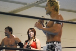 TAJIRIロープに振る、美央コルバタ(左写真)、AKIRAにタッチ。