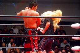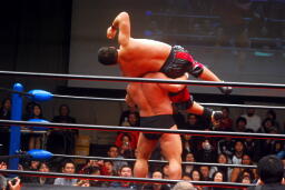 投げっ放しジャーマン(右写真)、カバー、カウント2。
