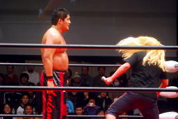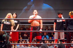 菊地は次回大会での石川vs菊地を要求(右写真)、石川受諾。