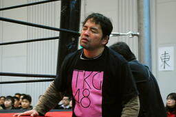 眉間から流血の石川「入江、お前強えわ。お前の力、すげえ脅威を感じた。TKG関係ねえ。何回も闘って、お前も強くなれ。俺も強くなるよ。もっともっと強くなって俺を超えてみろ。菊地さん、2月3日の新宿FACE大会、俺は顔の面白い菊地さんと闘う気はありません。俺はジャンボ鶴田と闘う菊地さんを見てレスラーを目指したんです。その頃の菊地さんで来てください。」(右写真)