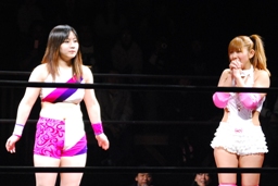 チェリーはユニオン5/4後楽園大会のシングルマッチの相手がバンビであることを発表。このDDT女子先輩後輩対決も凄いな(左写真)。
