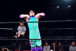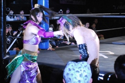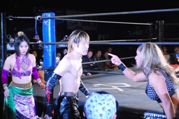 イサミがコーナーに上る、真琴姫が妨害(右写真)。