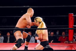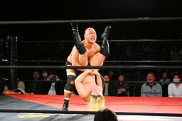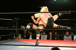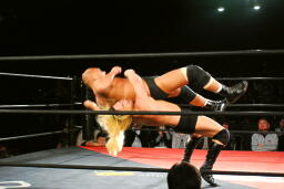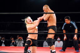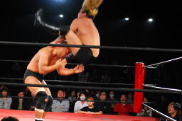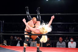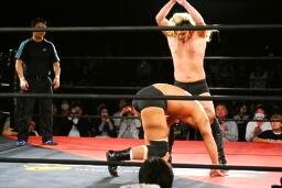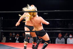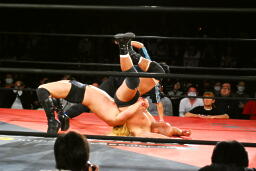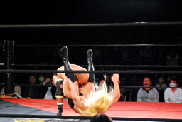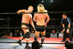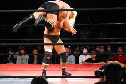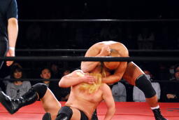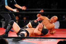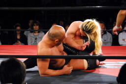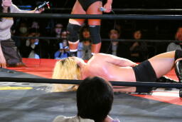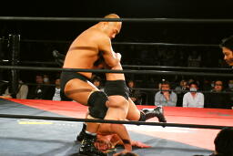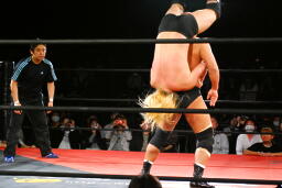 高岩パワーボム狙うが大家は抵抗(右写真)。
