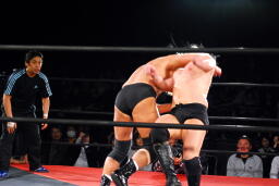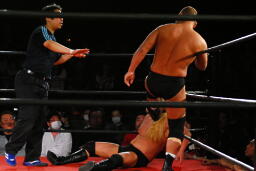 大家ジャンピングネックブリーカードロップ(右写真)、カウント2。