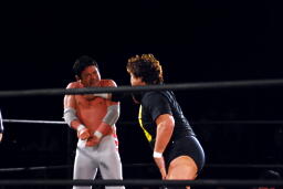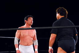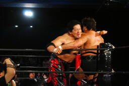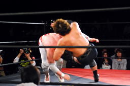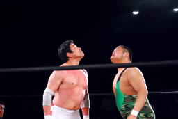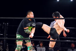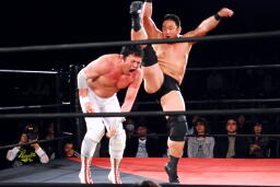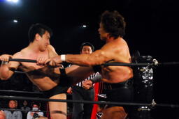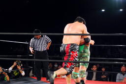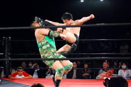 ユニオンのリングで元全日勢同士の対戦(左写真)。全日時代は対戦してなかったそうだが。