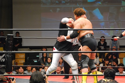 天龍グーパンチ(左写真)。さらにエルボーとグーパンチの打ち合い。