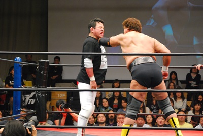 天龍グーパンチ、妻木吹っ飛ぶ(右写真)。