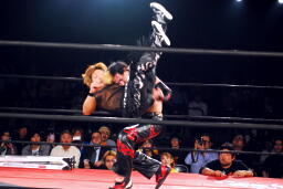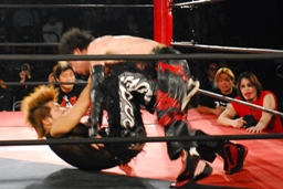 MIKAMI押し潰してエビ固め(右写真)、カウント2。