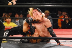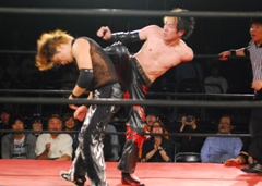 MIKAMIエルボースマッシュ(右写真)、イサミもエルボー。