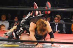 まさにEXTREMEなニードロップ(右写真)。しかしMIKAMIはカウント1で返す。
