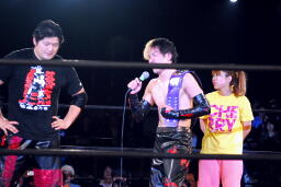 イサミ「皆さんわかってると思いますけど、これで終わりじゃなく、やっと始まったとこなんで。あの人を10年前に見てから、本格的にプロレスやろうと思ってから約10年、その間にできたユニオンプロレス、こんな素敵な仲間たちに出会えました。彼らが僕を強くしてくれたし、僕も彼らに負けないようにEXTREMEを自分の色に変えたいと思います。」(左写真)