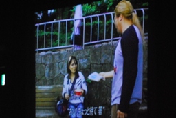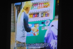 で、早速美央を付け狙う大家。美央が自動販売機で飲み物を買おうとすると「千円札どっちがきれいに入れられるか対決」を申し入れる(左写真)。美央が一発で入れ勝負あり。