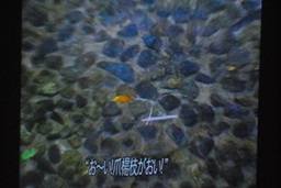 美央が爪楊枝を叩き落とすと水の中に落ちる(右写真)。