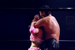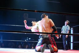 石川チョークスラム(右写真)、カウント2。