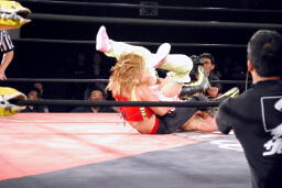 チェリーウラカン・ラナ、奈苗回転エビ固めに切り返す(右写真)、カウント2。
