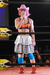 マサ子がリングに(右写真)。