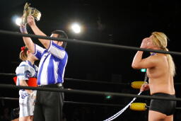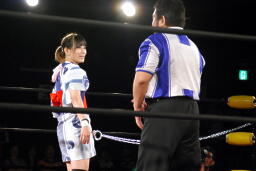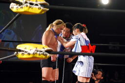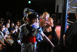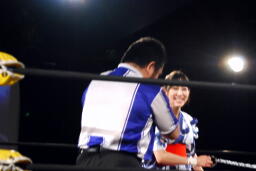 チェリーは美央に挑戦表明(左写真)。次回10/19新宿FACE大会でと大家が勝手に決定。