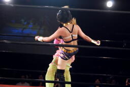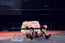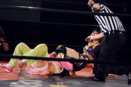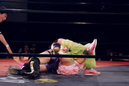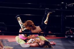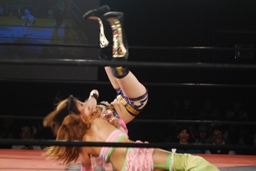 春夜恋は美央切り返してエビ固め(右写真)、カウント2。