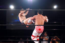 菊地がアトミックドロップ(右写真)、