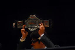 立会人がベルトを掲げる(右写真)。