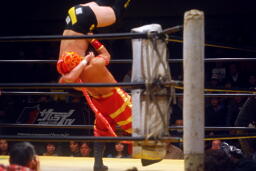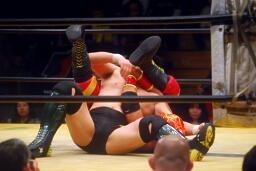 ハイキックから投げっ放しジャーマン(右写真)、ハブ男立ち上がる。