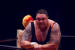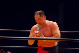 大谷「横綱、お久しぶりです。これからもよろしくお願いします。乙選手、まだまだプロレスのスタートしたばかり。ただひとつ言っとくと、プロレス、めちゃくちゃ厳しいけど、めちゃくちゃ楽しいから。これからも一緒に頑張ろう。そして橋本大地、毎日毎日大きな選手と戦ってボロボロにされています。僕でさえ想像つかないプレッシャーを背負って闘ってます。でもただの一度も弱音を吐いたことがありません。いつか偉大なる父親と肩を並べる、いや、超えれるレスラーになれるよう、ZERO1が責任をもって育てたいと思います。そんな大地に厳しい試練を与えようと思い、次の7月3日の後楽園ホール大会、まだ大地には何も言ってませんが勝手に決めました。大地の7月3日の後楽園の対戦相手はこの男です。」」(左写真)