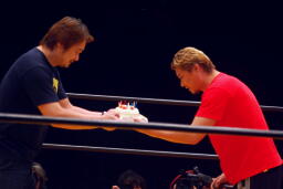 曙「続ける条件は、ちゃんと着れるもの用意すること!あとZERO1ファンの皆さん、只今帰ってきました。またこれからもZERO1のリングを大谷社長、橋本選手たちと一緒に熱くしていきたいと思ってます。今日はどうもありがとうございました。」(右写真)