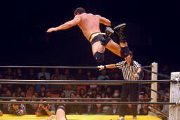 フセインジャンピングニーアタック(右写真)。