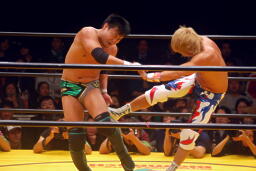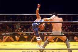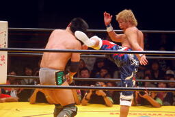 日高ソバット、野良犬ハイキック(左写真)。25分経過。