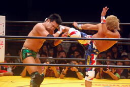 澤「ナーシャ!」と叫んで延髄蹴り、日高は野良犬ハイキックで撃墜(右写真)。