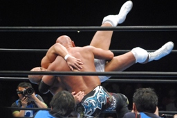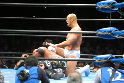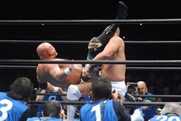 シャイニングウィザード(右写真)、カバー、カウント2。