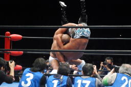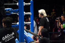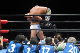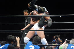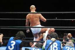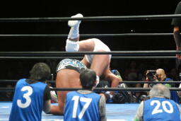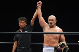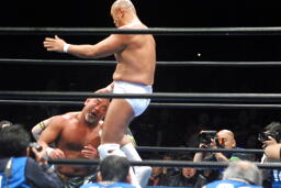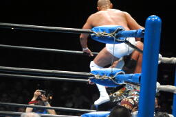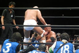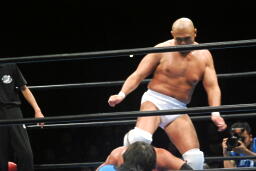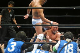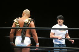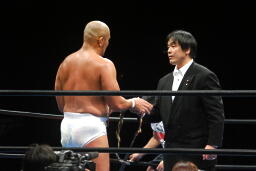 秋山「お前らいっぱい来やがってこの野郎!」曙には「横綱、来てくれてありがとう。でもな、お前らチャンピオン・カーニバルで勝って来い!俺はグローバル・タッグリーグで忙しいんだよ。」(右写真)