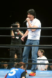 諏訪魔を始め(左写真)秋山に挑戦したい人間が続々とリングサイドに。