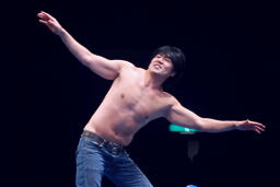 それでもKENSOが「僕が必ず三冠のベルトをこの全日本プロレスに取り戻す!いいですか!あそこにいるノアファンのバカヤローどもにゼンニッポン、イヤー!をビチッと決めたいと思います。ゼンニッポン、イヤー!」で締める(右写真)。