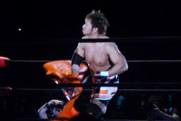 フィニッシュ撮り損ねた。てか、あれで決まるとは思ってもいなかった。会場もそんな感じの反応。真田のケガもあったようだが、小島は「いい試合」にすることも拒否?