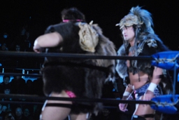 2試合ちょっと残念な試合(特に全日本ファンには)が続き、GET WILDに期待が高まる。そのGET WILDはワイルドを究めてマタギスタイル(右写真)。