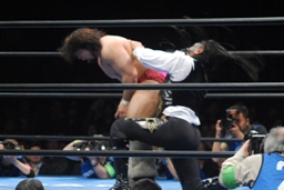 クエルボリングに戻すとブレーンバスター、征矢ブロックして逆に投げる(左写真)、ようやく大森にタッチ。