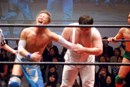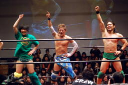 GMから2/19後楽園でKO-Dタッグに挑戦する「緑のメンバー」を発表するように言われ、大石が3人を並べて発表に。神妙な顔をして発表を待つ3人(右写真)。なおグラン浜田はその日に大阪で自身の40周年記念興行があるため参戦は不可。