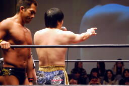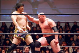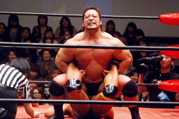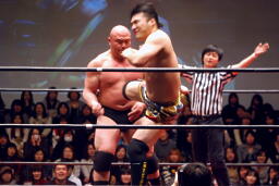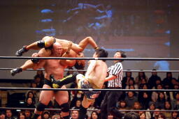 関本持ち上げて(右写真)叩きつける。岡林にタッチ。