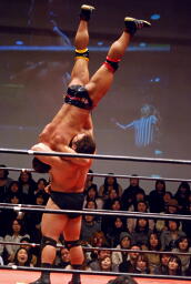 関本ブレーンバスター(左写真)、カウント2。