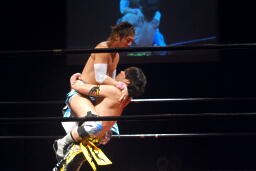 火野KUDOを抱え上げるとミリタリースラム(右写真)。