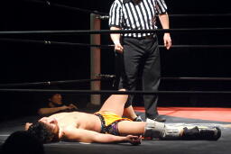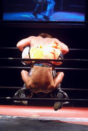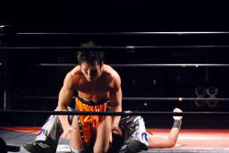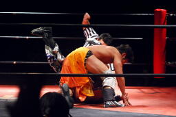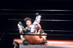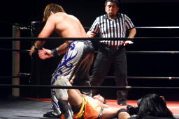 高梨クリップラー・クロスフェースに(左写真)、HARASHIMAエビ固め、カウント2。