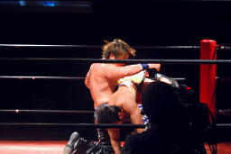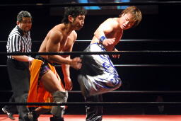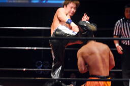 HARASHIMAソバット(右写真)、ハイキック、高梨ダウン。