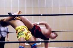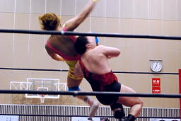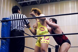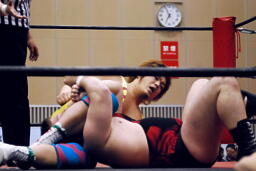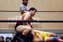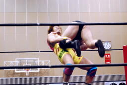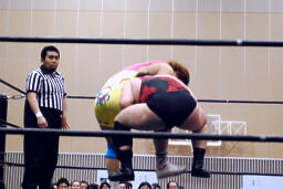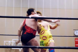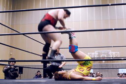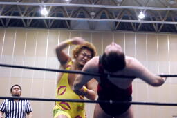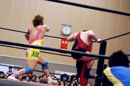 アントンロープに振る、福田切り返してココ☆ナツクラッシュ(右写真)、カウント2。