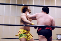 所沢からほんの数駅・小平出身の福田が入場。顔は内藤に似てるのにポーズはオカダカズチカ似(右写真)。