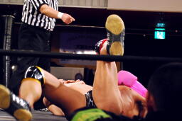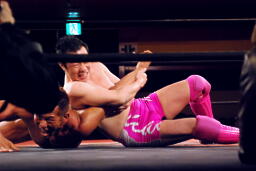 塩田ワキ固めに切り返す(右写真)マイケルはなんと秒殺ギブアップ。