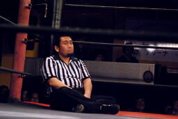 松井レフェリーやる気なし(右写真)。